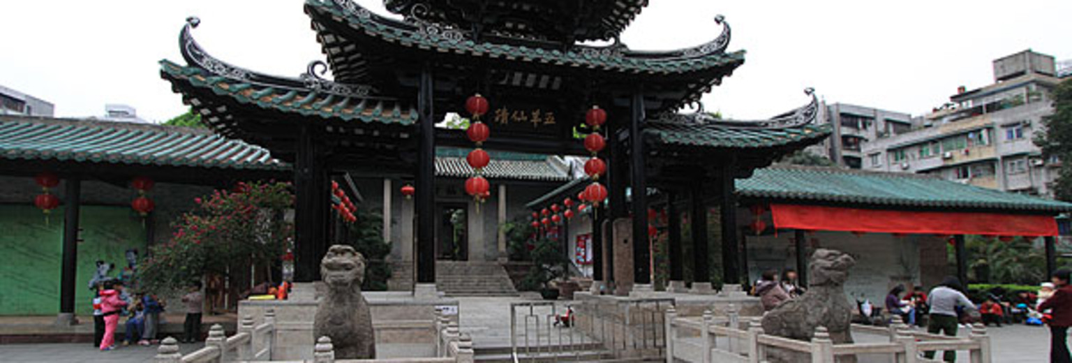 所属城市:广州 最佳旅行时间:10~12月 开放时间:9:00-17:00 用时参考: 景点地址:广东省广州市越秀区惠福西路233号 公交线路: 景点简介: 位于惠福西路,明洪武十年(1377年)建成,是一座祭祀五仙的谷神庙,为广州市重点文物保护单位。 相传周夷王时,有五位仙人骑着口含谷穗的五头羊飞临广州,把谷穗赠给广州人,祝愿广州永无饥荒,言毕仙人腾空而去,羊化为石,故广州又叫羊城、穗城。人们为了纪念五位仙人,建造了五仙观,塑五仙骑羊像,奉祀观内。五仙观坐北朝南,依地势而建,原有照壁、牌坊、山门、中殿、后殿,两侧还有东西斋房、三元殿、廊庑等,现仅存头门、后殿和东西斋房部分旧建筑。头门上石匾有清同治十年(1871年)由文渊阁大学士、两广总督瑞麟书写的“五仙古观”4个大字。后殿是绿琉璃瓦重檐歇山顶,琉璃鳌鱼宝珠瓦脊,立面造型比例适度,保留有早期建筑的遗风,是广州市保存较好的明代木构架建筑。五仙观还保留有宋代至清代的碑刻14块,石麒麟一对。原有五仙塑像,年幼的在中间,手里拿着稻穗,年长的四位在左右,手里分别拿着黍、稷等谷穗。 五仙像下面的五头羊,大小相交,毛色斑驳。 行往后殿东侧,可见裸露的红砂岩层上面有一巨大的脚印状凹穴,古人以为是仙人足迹。其实在晋代以前,这里还是江边,人称“坡山古渡头”,凹穴是古时珠江洪水期的急流冲蚀而成的。明清两代,分别以“穗石洞天”和“五仙霞洞”列入“羊城八景”。 |