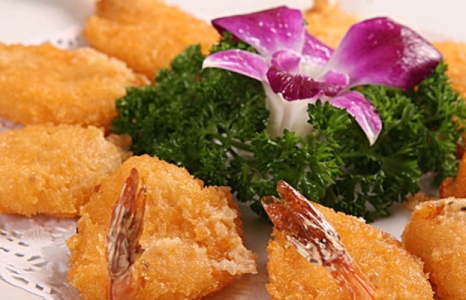 获得至高荣誉金奖的礼云子琵琶虾,一碟六只新鲜海虾,每只用礼云子(蟛蜞的蟹子)、露笋、甘笋丝酿海虾包豆腐皮再炸,礼云子鲜甜,虾及蟹两种海鲜美味配搭得天衣无缝,咀嚼起来,虾中有蟹香、蟹香中又有虾甜,十分爽口甘甜,香腴丰美。
