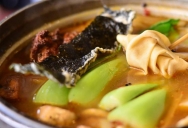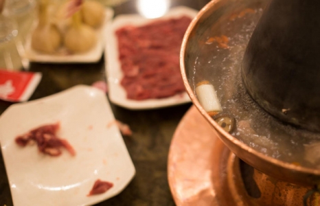 主要原料是羊肉片,粉丝,白菜,香菇,豆腐等,配料是葱姜蒜,辣油等。在火锅中加入鲜汤烧沸,加入香菇,料酒,辣油等调料烧开后将羊肉,粉丝等边涮边吃。