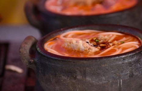 邵阳米粉用纯米制作,不加任何其他材料,新米陈米的配比让做出来的米粉弹性十足,雪白顺滑容易夹断,一口嗦下去嘴唇上沾上红油,嚼起来满口米香,值得一尝。
