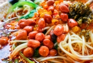 桥香园是昆明当地知名的老字号米线店,米线种类很多,招牌是状元山珍米线,搭配鸡肉、贝尖、螺肉、笋片、菊花瓣,还有美味的高汤,再放上一大勺辣椒,非常美味。