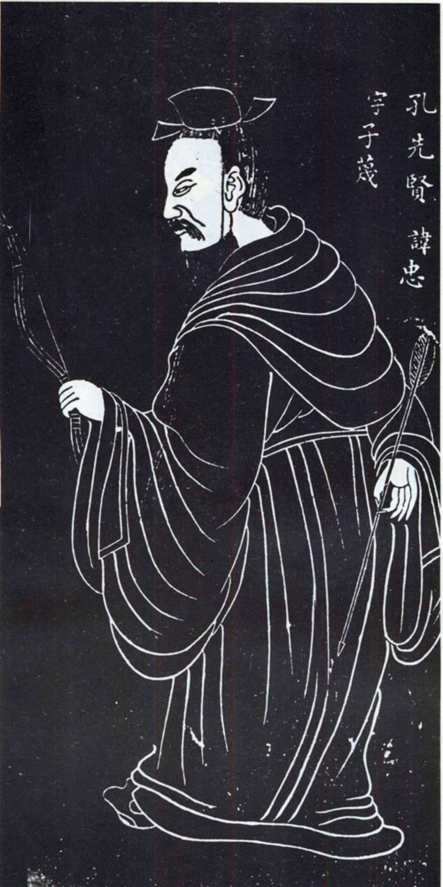 春秋孔子弟子。孔子兄之子。孔忠画像现藏台北博物院。孔忠杭州石刻像南宋绍兴二十六年(1156)十二月刻,李龙绘,宋高宗赵构正书赞,为《宣圣及七十二圣贤像》之一。孔忠立像取自明吕维祺编,崇祯刻本《圣贤像赞》。