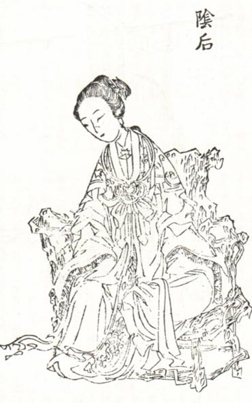东汉光武帝刘秀皇后。刘秀未起事前,尝云:“仕宦当作执金吾,娶妻当得阴丽华!阴丽华像取自清颜鉴题诗,清王翙绘图,嘉庆间颜氏刻本《百美新咏》。