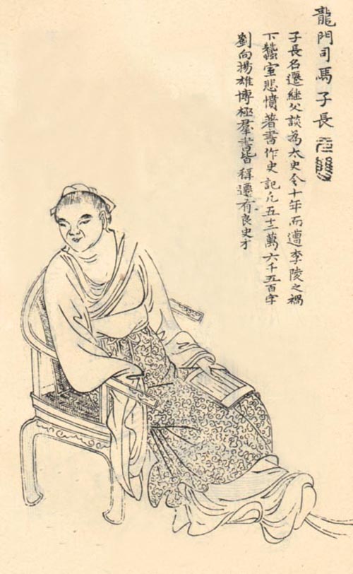 汉代史学家。司马谈子。早年游历遍及南北,初任郎中,曾奉使巴、蜀、笮、昆明等地,并随武帝寻游名山大川,元封三年,继父任太史令,得博览皇室秘书。天汉二年,为李陵降匈奴辩解,受腐刑,发愤辑理,写成《史记》。司马迁之《史记》(《太史公书》)是为我国第一部纪传体通史,上起黄帝,下至汉武帝太初年间,对后世史学、文学均有深远影响。司马迁像取自明代王圻辑,万历刻《三才图会》。司马迁题跋像取自明天然撰赞,弘治十一年重刻本《历代古人像赞》。司马坐姿题跋像取自清金史(古良)绘,康熙中叶刻本《南陵无双谱》。司马迁题跋坐像取自清上官周绘,乾隆八年刻本《晚笑堂画传》。司马迁半身像取自清顾沅辑,道光十年刻本《古圣贤像传略》。