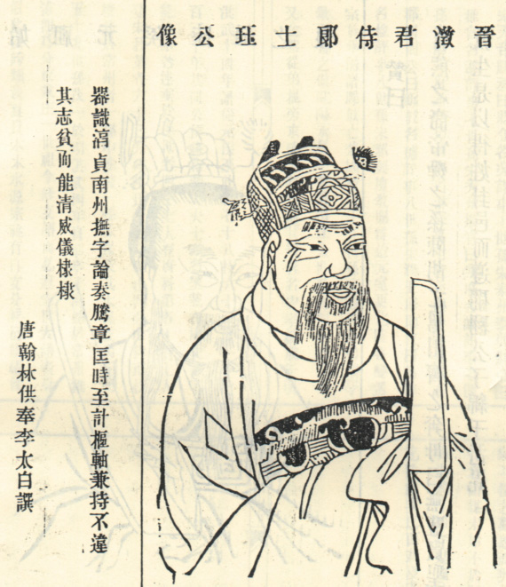 晋代官吏。历官延英馆进讲、秘书监、中书黄门侍郎、金紫光禄大夫。像取自1941年《江苏武进戴庄陆氏族谱》。