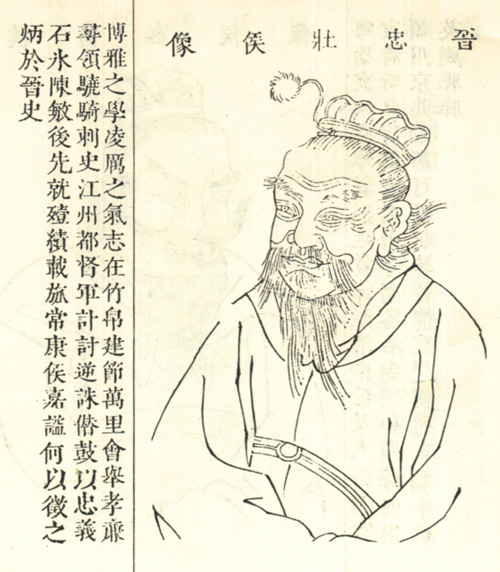 东晋武职官吏,任历阳内史陈昶之司马,昶兄敏据扬州反,受周玘命,斩昶,共灭敏,领江州刺史、都督江洪二州诸军事。像取自清乾隆修《江苏无锡钱氏宗谱》。