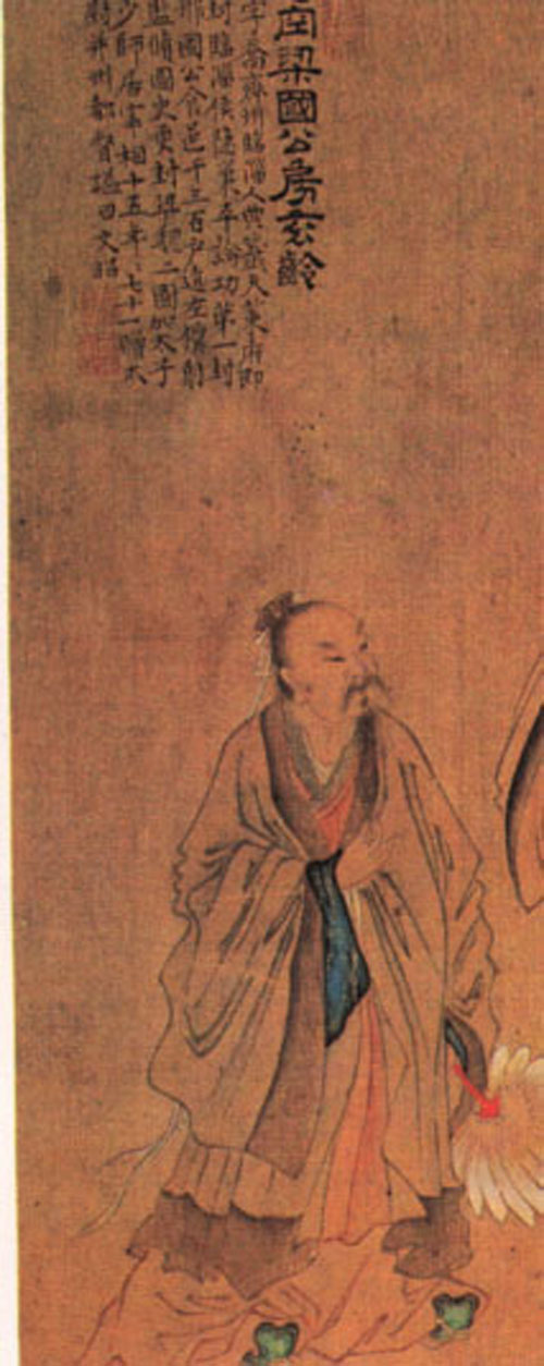 唐初大臣。随开皇时进士。为隰州尉,唐兵入关中,归李世民,任秦王府记室。唐高祖武德中,与长孙无忌等策划玄武门之变。太宗贞观元年为中书令,封刑国公,后任尚书右仆射,改魏国公,监修国史,徙梁国公,进司空。房玄龄居相位十五年,与杜如晦共掌朝政,世称“房谋杜断”。受诏重撰《晋史》。房玄龄画像取自明陈洪绶摹唐阎立本绘《凌烟阁功臣图》。房玄龄题跋像取自明天然撰赞,弘治十一年重刻本《历代古人像赞》。房玄龄像取自清刘源绘,朱圭刻,清康熙七年苏州柱笏堂刻本《凌烟阁功臣图》。