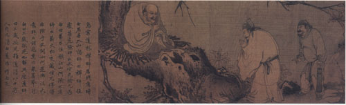 唐代高僧。居钱塘,唐元和十五年(公元820年),白居易出任杭州刺史时,曾上山去参访。道林画像取自南宋梁楷绘《八高僧图之三·白居易拱谒,鸟窠指说》,上海博物馆藏。