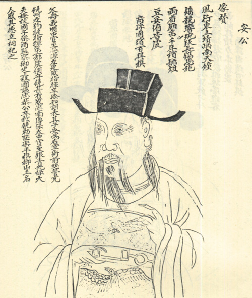 五代南唐官吏,戴寿子。历官饶州刺史、检校国子祭酒、监察御史、上柱国。像取自清代修《安徽休宁戴氏宗谱》。