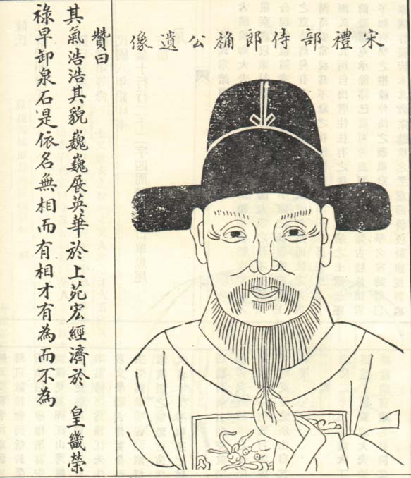 宋代官吏。政和二年上舍,进士及第。历仕宣和提点福建路刑狱、高宗礼部侍郎,忤秦桧罢官,后知襄阳府、充京西南路安抚,改知广州,未至卒。像取自1919年修《江苏润州陈氏宗谱》。