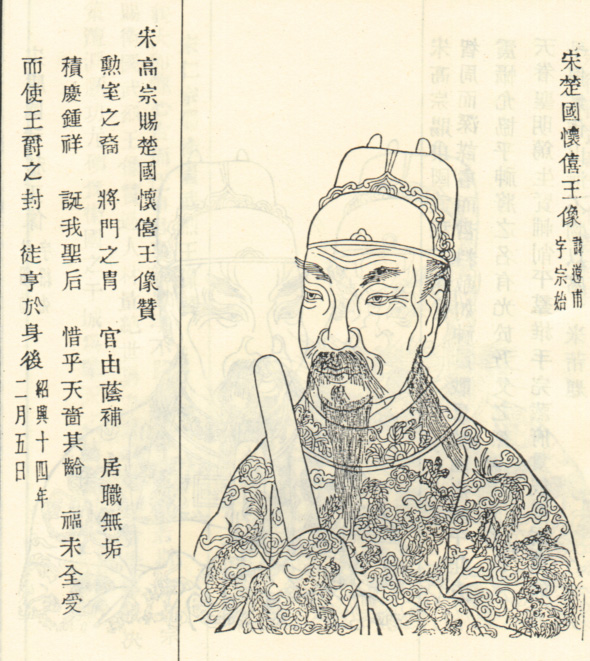 宋代大臣。历官北作坊副使、太师、尚书令兼中书令,封武功郡王。像取自1915年修《浙江萧山东瓜沥高氏家谱》。