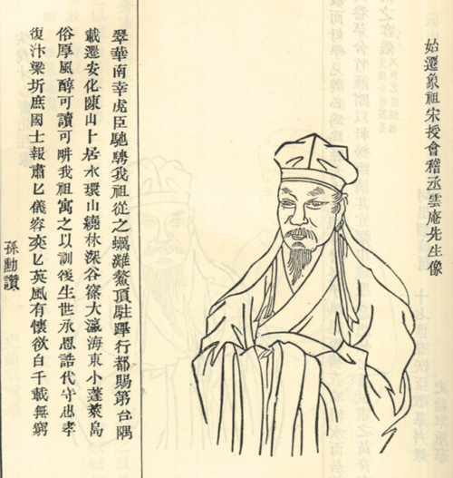 宋代居士。举德行茂才科,授会稽丞不就,高宗南渡时,由台迁象。像取自1926年修《浙江象山钱氏宗谱》。