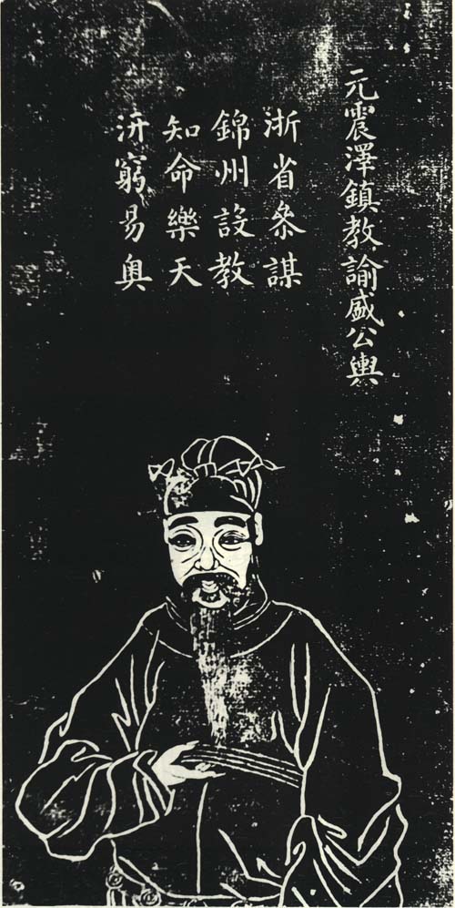 元代官吏、学者,初为震泽教谕,升锦州学正,顺帝至正间,参谋浙省军政,擢崇德州判官,好古博识,医卜地理之书,无不通究,有《韵书群玉》、《滴露斋稿》。盛舆石刻像刻于1827(清道光七年),清孔继尧绘,石蕴玉正书赞,谭松坡镌,为《沧浪亭五百名贤像》之一。像取自清代顾沅辑,道光九年刻本《吴郡名贤图传赞》,清孔继尧绘,