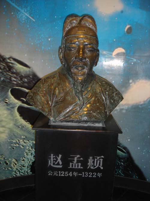 元代官吏、书画家。宋宗室。幼聪敏,以父荫为真州司户参军,宋亡,家居。元世祖征入朝,授兵部郎中,迁集贤直学士。累拜翰林学士承旨。赵孟頫诗文清邃奇逸,书法兼工篆、隶、行草,自成一家。绘画亦善山水、竹石、人物、鞍马、花鸟。有《送雪斋文集》。赵孟頫自画像页,故宫博物院藏。赵孟頫画像明仇英绘,美国克利夫兰艺术馆藏。赵孟頫像取自明代王圻辑,万历刻《三才图会》。赵孟頫半身像取自清顾沅辑,道光十年刻本《古圣贤像传略》。赵孟頫绘《人骑图》,故宫博物院藏。
