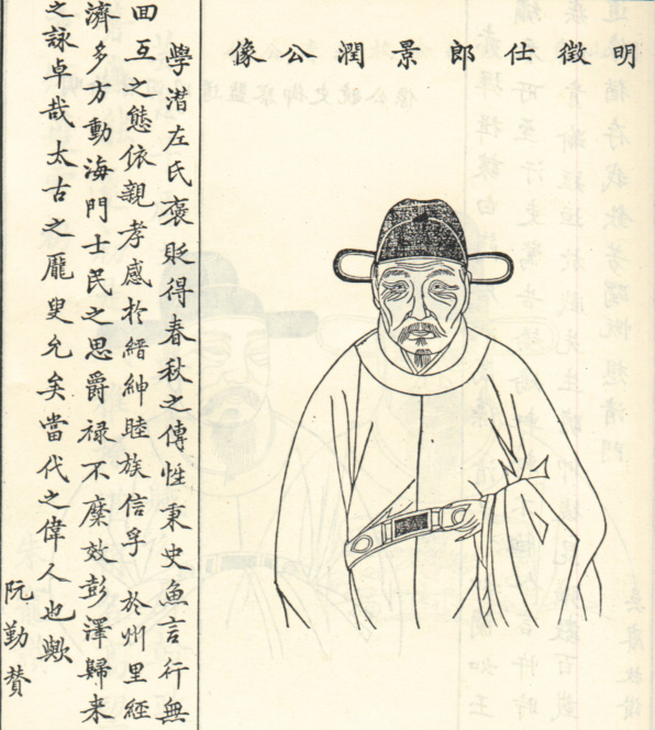 明代官吏。岁贡。仕至浙江海门卫。像取自清代修《安徽绩溪胡氏宗谱》。