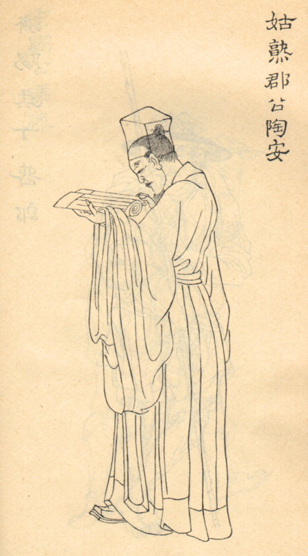 明代官吏、学者。元顺帝至正四年举人,授明道书院山长,避乱家居,朱元璋取太平,安出迎,留参幕府。任左司员外郎。洪武元年任知制诰兼修国史,寻出任江西行省参知政事,卒官。有《陶学士集》。陶安题跋像取自清上官周绘,乾隆八年刻本《晚笑堂画传》所附《明太祖功臣图》。陶安半身像取自清顾沅辑,道光十年刻本《古圣贤像传略》。陶安坐像取自清任熊绘《列仙传》。