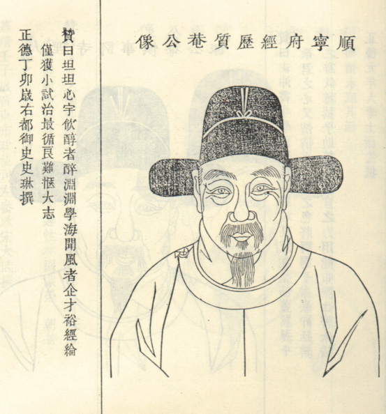 明代官吏。廪贡。仕至云南顺宁府经历。像取自明代修《浙江姚江徐氏宗谱》。