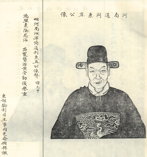 明代官吏,仕至河南汝宁府通判。像取自清嘉庆修《浙江诸暨许氏宗谱》。