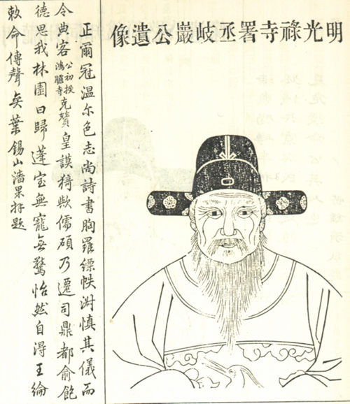 明代官吏。太学生。历仕鸿胪寺序班、光禄寺署丞。像取自清宣统修《江苏毘陵薛氏宗谱》。