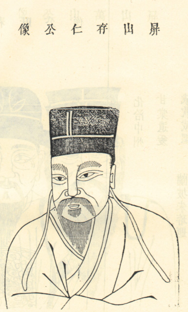 明代宿儒,万历间诸名儒会课推为会长。像取自1920年修《安徽黟县屏山朱氏宗谱》。