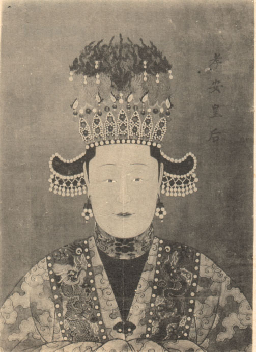 明代皇帝明穆宗皇后。谥孝安皇后。朱载垕孝安皇后画像为明宫廷画师绘,故宫博物院藏。