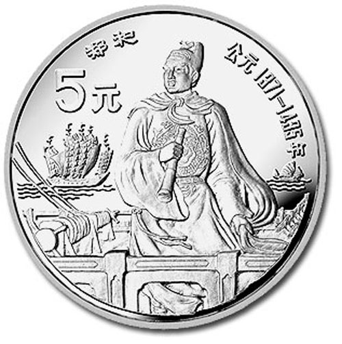 明代宦官、航海家。明初入宫为太监,后从朱棣起兵,有功,累擢内官监太监,永乐三年奉成祖命与王景弘等通使西洋,五年还国。至宣德八年共二十八年间,奉命七次下西洋,途经三十余国。促进了中国与亚非各国经济、文化交流。郑和坐姿像取自明罗懋登著《三宝太监西洋记通俗演义》。