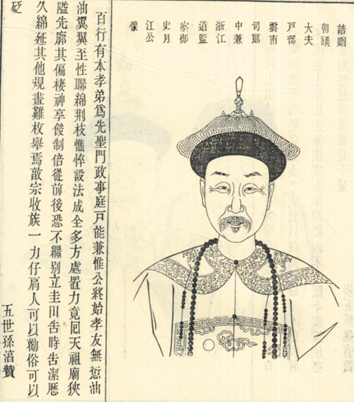 清代官吏。太学生。历仕州同知、户部云南司郎中、浙江道监察御史。像取自清光绪修《江苏无锡顾氏宗谱》。
