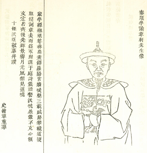清代官吏。雍正乙茂科选拔贡生,朝试二等。仕至温州府泰顺学教谕。像取自1926年修《浙江象山钱氏宗谱》。