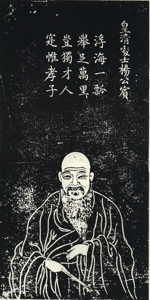 清代学者。为人作幕,其父坐事长流宁古塔,请代父戍不许,与弟先后出塞省父,习其地理沿革,出川道里、风土人情,著《柳边纪略》,为世所称,另有《晞发堂集》、《杨大瓢杂文残稿》。杨宾画像取自清杨晋绘、王翚补景《耕夫像》,南京博物院藏。杨宾苏州石刻像刻于1827(清道光七年),清孔继尧绘,石蕴玉正书赞,谭松坡镌,为《沧浪亭五百名贤像》之一。杨宾半身像取自清代顾沅辑,道光九年刻本《吴郡名贤图传赞》,清孔继尧绘。