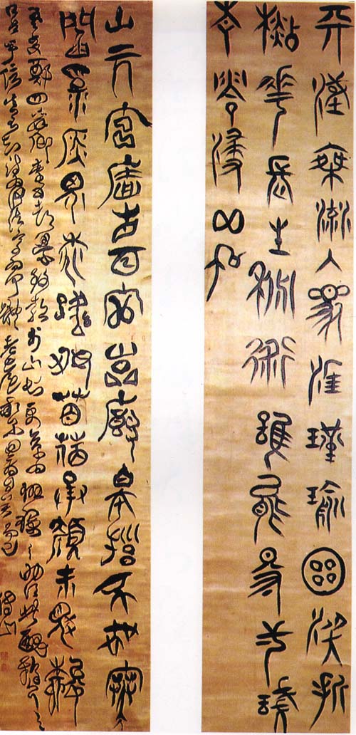 明末清初思想家、书画家。明诸生。明亡为道士,隐居土室养母。康熙中举鸿博,屡辞不得免,至京,称老病,不试而归。顾炎武极服其志节。于学无所不通,经史之外,兼通先秦诸子,又长于书画医学。有《霜红龛集》等。傅山像取自《清代学者像传》第一集,清叶衍兰辑摹,黄小泉绘。傅山《仙游诗十二屏》(部分),日本澄怀堂藏。
